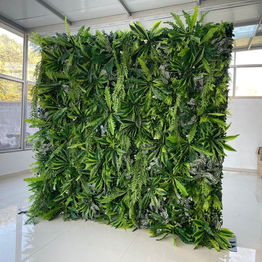 Handmade Tropical Green Palm Artificial Cloth Curtain Silk Flower Wall Wedding Backdrop Decoration Outdoor Event Party Decor Props