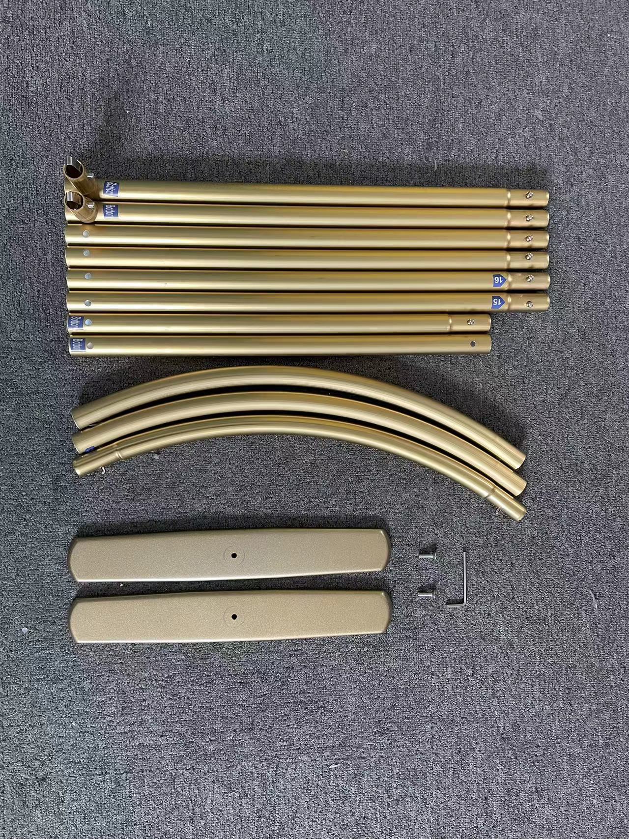 This gold arch stand is made of aluminum alloy, a perfect manufacturing process, which makes the frame very luxurious, but also very strong. Stand can be assembled and disassembled quickly and can be reused. We use 25mm diameter aluminum alloy tubes( the material is not metal).